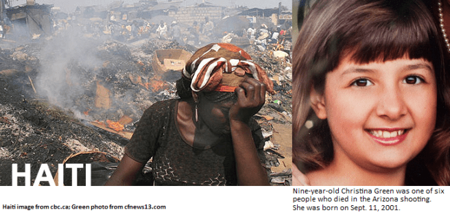 It is January 12 and all day I have been wanting to blog about Haiti. But the recent situation in Arizona weighs heavy on my heart as well.