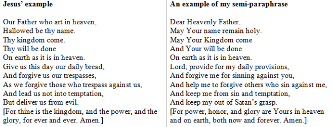 But the Our Father is so second nature to me (and many others with a Christian background), it could be vain repetition. I could easily recite this prayer without putting any thought into it. But I’m trying really hard not to. I’m doing my best to consciously say the Our Father while thinking through what I’m saying. Another good way to do this is to paraphrase a few lines (without the Message Bible!).
